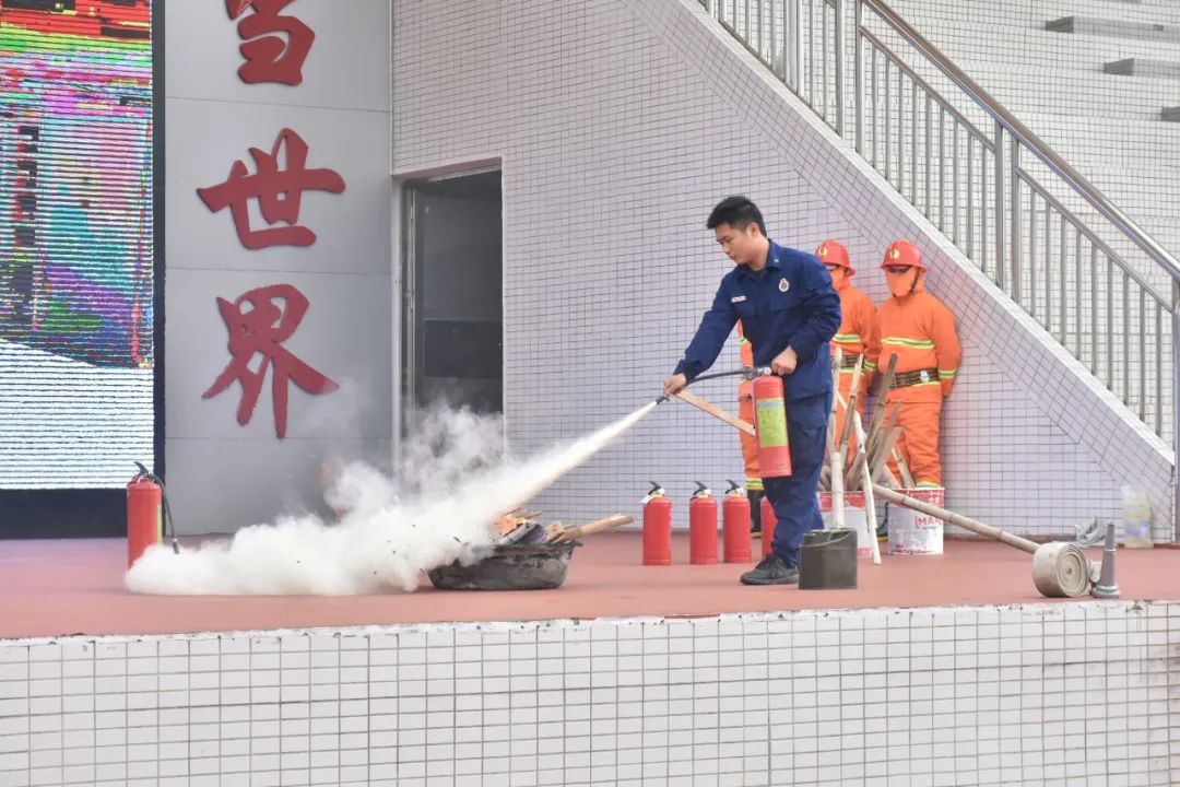 理論知識過關(guān),接下來消防志愿者團隊就開始實際演練滅火器的使用。